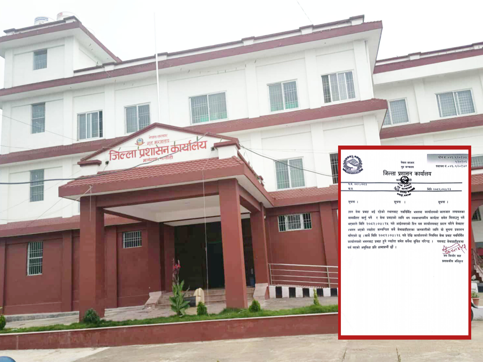 प्रशासकीय अधिकृत जय किशोर साहद्वारा हस्ताक्षरित सूचनामा उल्लेख भएअनुसार, साउन २६ गतेदेखि भने नव निर्मित भवनबाटै नियमित सेवा प्रवाह गरिनेछ।