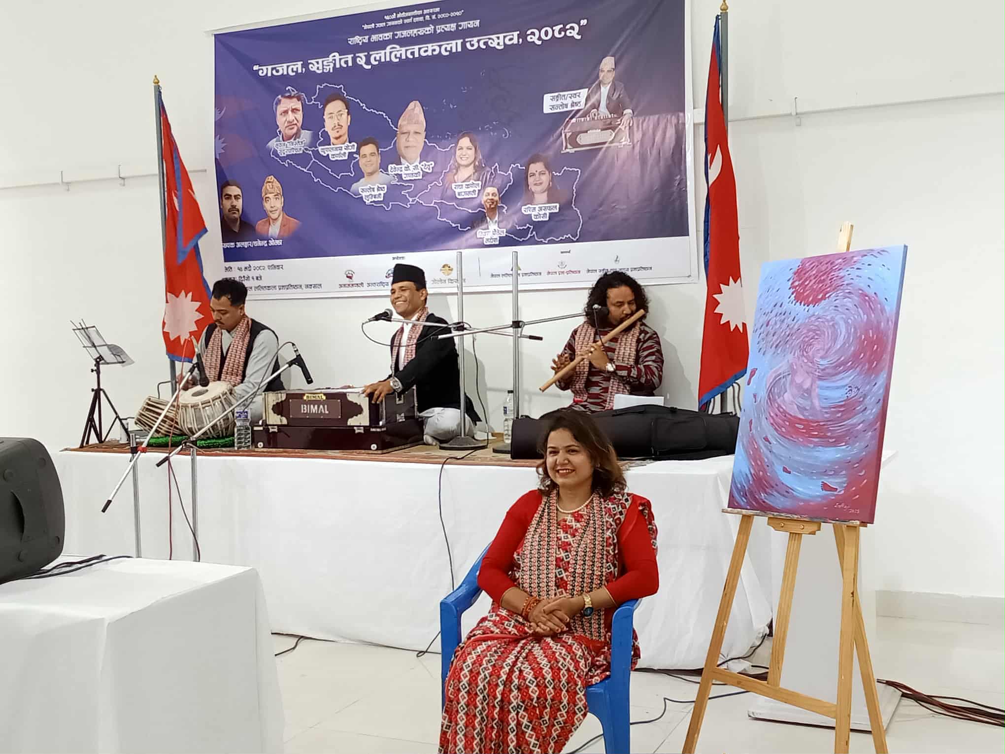 काठमाडौं,भदाै— १५ गते । नेपालमै पहिलो पटक ‘गजल, सङ्गीत र ललितकला उत्सव’ सम्पन्न भएको छ ।१४ भदौ २०८२ शनिबार दिउँसो १ बजे गजलको विकास, विस्तार र परिष्कारमा सक्रिय संस्थाहरू अनाममण्डली र अन्तर्राष्ट्रिय नेपाली गजल मञ्च तथा नेपाली सङ्गीत प्रवर्द्धनमा क्रियाशील गोल्डेन क्रियसनको आयोजनामा उक्त उत्सव भएको हो ।