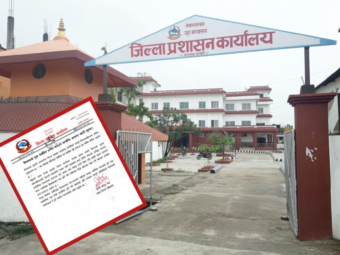 प्रमुख जिल्ला अधिकारी तुलसी बहादुर श्रेष्ठद्वारा जारी सूचनामा पछिल्लो समय जिल्लामा उत्पन्न सुरक्षा संवेदनशीलतालाई मध्यनजर गर्दै चाडपर्वको नाममा सार्वजनिक स्थानमा हो–हल्ला गर्ने, चर्को आवाजमा डीजे वा बाजा बजाउने, आर्केस्ट्रा नचाउने, मादक पदार्थ सेवन गरी सवारी साधन चलाउने लगायतका अवाञ्छित गतिविधिहरू नगर्न आग्रह गरिएको छ ।