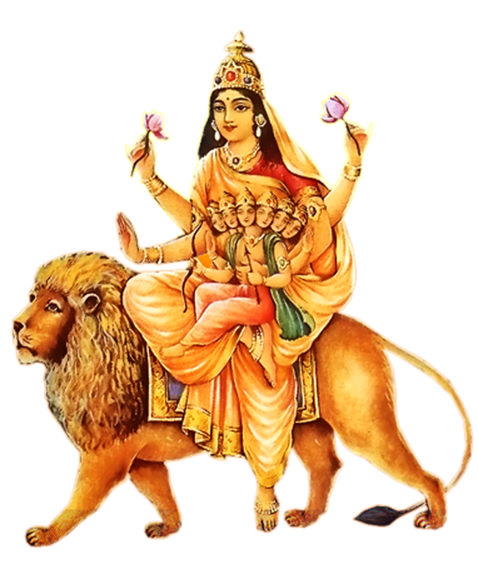 पुराणअनुसार विभिन्न समयमा माता पार्वतीले लिएको रूपलाई नै नवदुर्गा भनेर पूजा आराधना गर्ने परम्परा चलेको हो। मार्कण्डेय पुराणअन्तर्गत देवीमाहत्म्य अनुसार नवदुर्गा भन्नाले शैलपुत्री, ब्रह्मचारिणी, चन्द्रघण्टा, कुष्माण्डा, स्कन्दमाता, कात्यायनी, कालरात्री, महागौरी र सिद्धिदात्री हुन्।