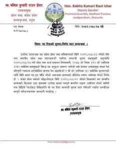 उता अर्काे सूचना मार्फत मधेश प्रदेश सभा सचिवालयले बिहिवार जारी पाँच जना माननीय प्रदेश सभा सदस्यहरूको पद रिक्त सम्बन्धी सूचना बदर गरेको छ । उपसभामुख मा. बबिता कुमारी राउत ईशरद्वारा जारी गरिएको सूचनामा सभामुखले भावावेशमा लिएर गरिएको निर्णय प्रक्रियागत रूपमा त्रुटिपूर्ण रहेको उल्लेख गरिएको छ ।