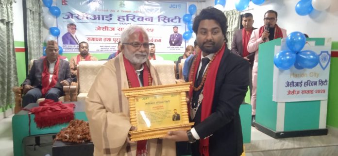 हरिवन, मंसिर २७ गते । जेसीआई हरिवन सिटीद्वारा आयोजित जेसीज सप्ताह २०२५ को समापन तथा पुरस्कार वितरण कार्यक्रम सम्पन्न भएको छ । कार्यक्रम मधेश प्रदेश सरकारका विना विभागीय मन्त्री जंगीलाल रायको प्रमुख आतिथ्यता तथा जेसीआई हरिवन सिटीका अध्यक्ष रामप्रवेस दासको अध्यक्षतामा शनिवार साँझ सम्पन्न भएको हो ।