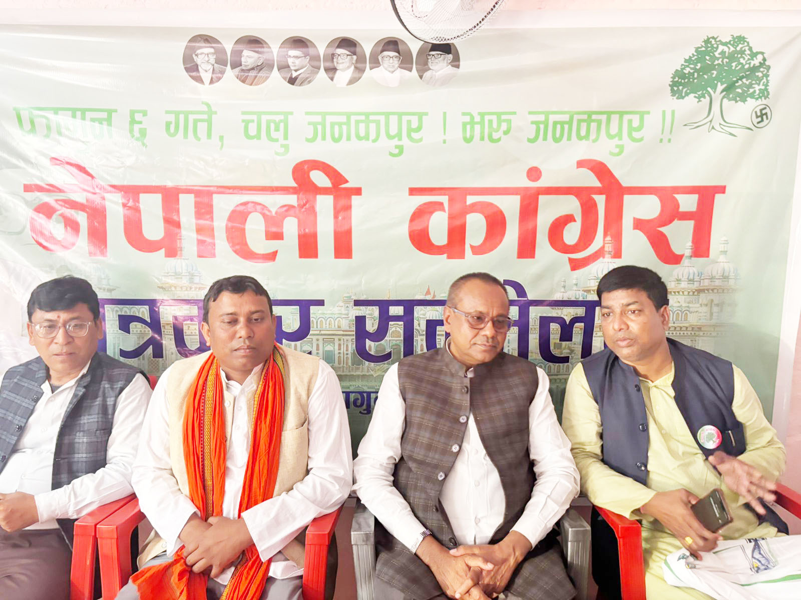 नेपाली कांग्रेस मधेश प्रदेश समितिले लोकतन्त्रप्रेमी नागरिक, पार्टीका अग्रज, युवा, महिला तथा कार्यकर्तालाई फागुन ६ गते जनकपुरधाममा उपस्थित भई कार्यक्रम सफल बनाउन आह्वान गरेको छ । ‘प्रतिज्ञा सभा’मार्फत जनतासँग प्रत्यक्ष संवाद गर्दै भावी राजनीतिक मार्गचित्र प्रस्तुत गरिने पार्टीले जनाएको छ ।