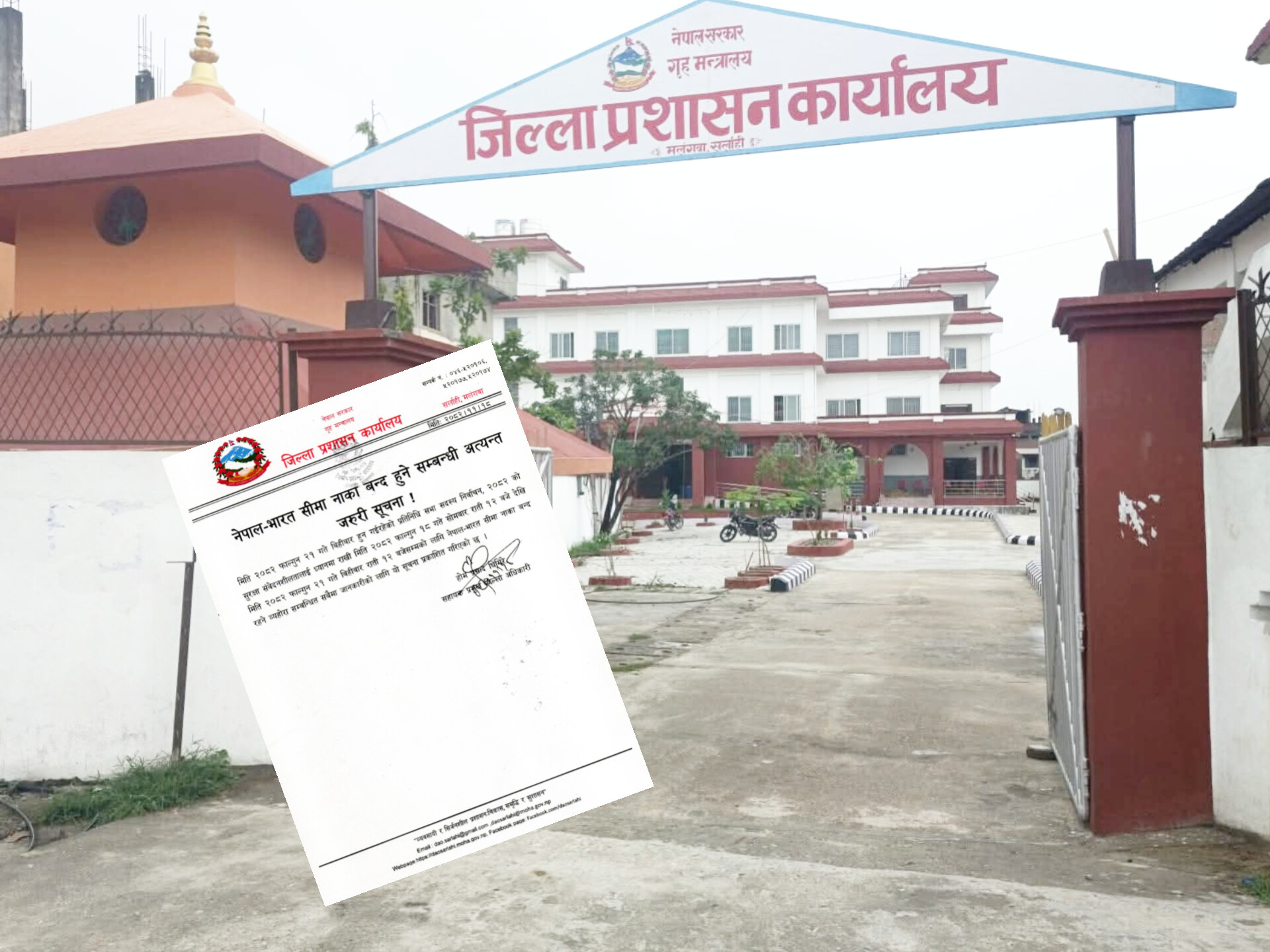 जिल्ला प्रशासन कार्यालय सर्लाहीका सहायक प्रमुख जिल्ला अधिकारी हाेम प्रसाद घिमिरेद्वारा हस्ताक्षरित सूचनामा फागुन १८ गते साेमवार राति १२ बजेदेखि फागुन २१ गते बिहीवार राति १२ बजेसम्म सीमा नाका बन्द रहने जनाइएको छ।