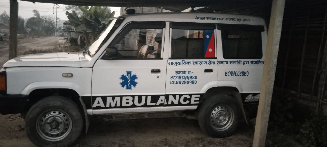 स्थानीय सामुदायिक स्वास्थ्य समाज नेपाल परवानीपुर नामक गैह्र सरकारी संस्था मार्फत् सञ्चालन ल्याइएको  एम्बुलेन्स स्थानीय चन्दा दातालाइ थाहै नदिईकन सुटुक्क बिक्री  गरेको भन्दै स्थानीयले अहिले समितिसँग एम्बुलेन्स कहाँ छ ? भनेर खोजीविन सुरु गरेका छन्  ।