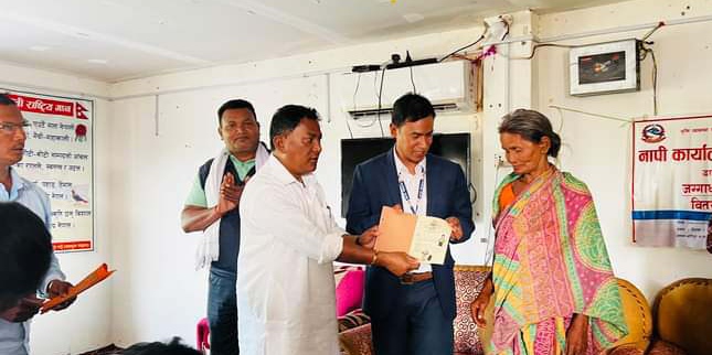 यता हरिपुर नगरपालिका वडा नं. २ कछडिया टोल, वडा नं. ७ चिताइन र पचगछिया टोल र वडा नं. ८ को जगतपुर तथा हात्तीसारका ३९ परिवारलाई नगरपालिकामा एक कार्यक्रमकाे आयोजना गरी भोगचलनको आधारमा  जग्गाधनी पुर्जा वितरण गरिएको नगर प्रमुख गोपाल पंजियारले जानकारी दिनुभयो ।