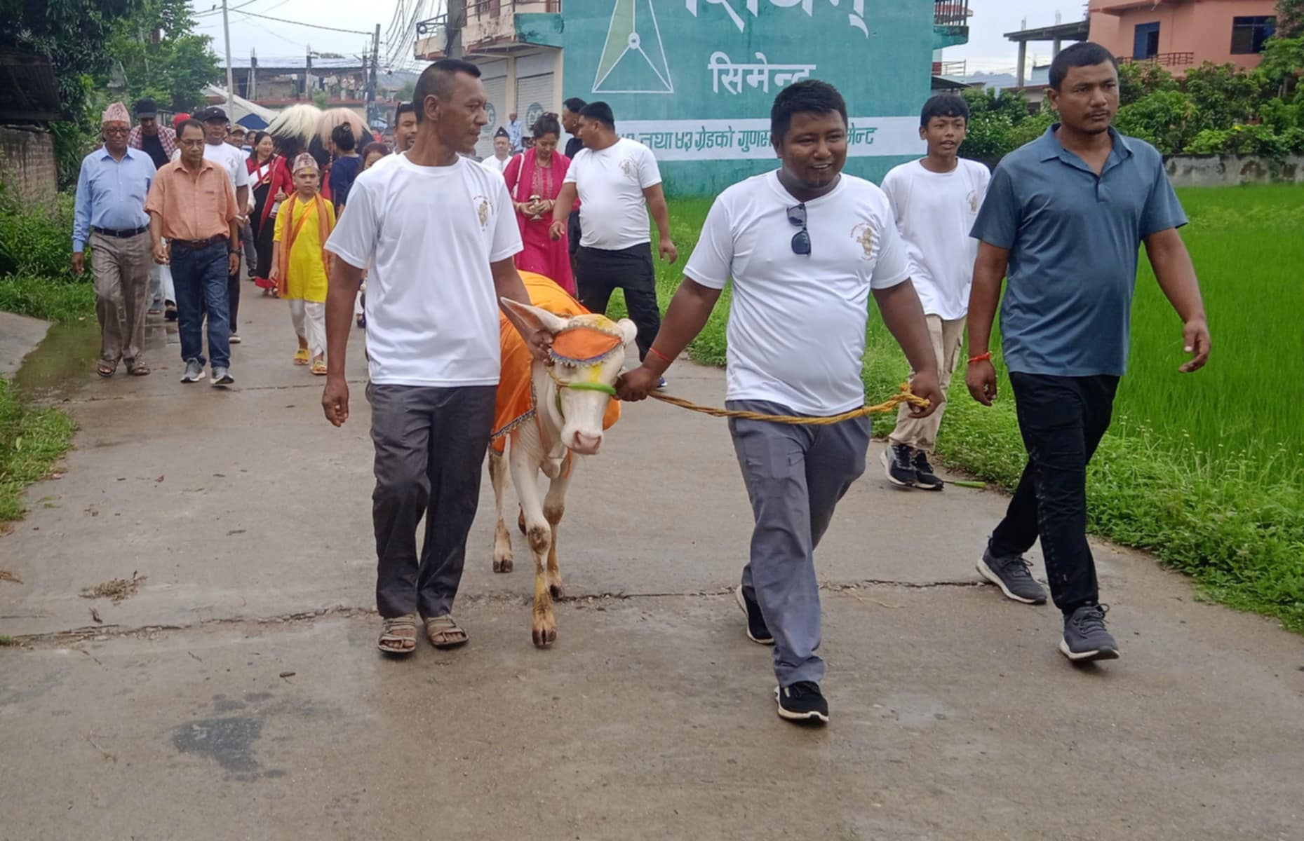 एक वर्षभित्र दिवङ्गत भएका आफन्तको सम्झनामा गाईलाई सिङ्गारेर लालबन्दी बजारमा रहेको काे दुर्गा मन्दिर,डुमडुमे देवालय परिसर परिक्रमा गराई लाखे नाचसहित गाईजात्रा मनाइएको हो ।