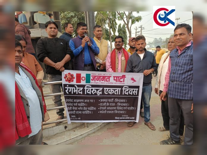 संसारमा ठुलै र थुप्रै परिवर्तनहरु भईसक्दा पनि जातिय चिन्तन र रंगभेदको समस्याले अझै पनि समाजलाई पछाडि धकेलिरहेको अवस्थामा दिवसले ठुलो महत्व राख्ने जनमत पार्टीका केन्द्रीय सदस्य तथा जिल्ला ईन्चार्ज श्रीचन यादव(सुजन)ले बताए ।