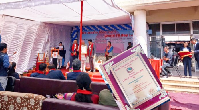 बिश्व क्षयरोग दिवसको अवसर पारेर आज क्षयरोग केन्द्र भक्तपुरले आयोजना गरेको कार्यक्रममा स्वास्थ्य तथा जनसंख्या मन्त्री प्रदीप पौडेल लालबन्दी नगरपालिका का प्रमुख एवम् लालबन्दी नगर अस्पताल व्यवस्थापन समिति अध्यक्ष वासुदेव अधिकारीलाई सम्पन्न पत्र प्रदान गरेका हुन ।