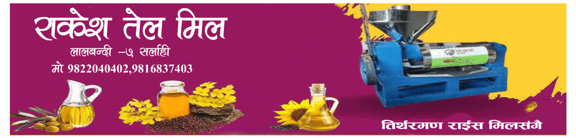 Home Advertisement Adbar-3 Rakesh tel-3 AdvertisementAdbar-3 Rakesh tel-3 By चियोचर्चो खबर - April 16, 2025 0 FacebookTwitterPinterestWhatsApp RELATED ARTICLESMORE FROM AUTHOR Adbar-3 Rakesh tel m-ad Adbar-1 नगद १४ लाखसहित पर्साबाट दुई जना पक्राउ Adbar-3 Rakesh tel mli-ad भरखरै प्राप्त नेपाली कांग्रेसको जनकपुर ‘प्रतिज्ञा सभा’को तयारी पूरा, एक लाख सहभागिता हुने... February 17, 2026 हत्याको विरोधमा अदालतका कर्मचारीले गरे, सेवा प्रवाह बन्द गरि विरोध प्रदर्शन February 16, 2026 पूर्वाधार विकास कार्यालय सर्लाहीका इन्जिनियर प्रमोद यादवको गोली हानेर हत्या February 15, 2026 जसपा र लोसपाका केन्द्रीय नेताहरू कांग्रेसमा प्रवेश, तराईमा कांग्रेस झन बलियो... February 14, 2026 लालबन्दीमा आज ८ घण्टा विद्युत् आपूर्ति बन्द हुने February 14, 2026
