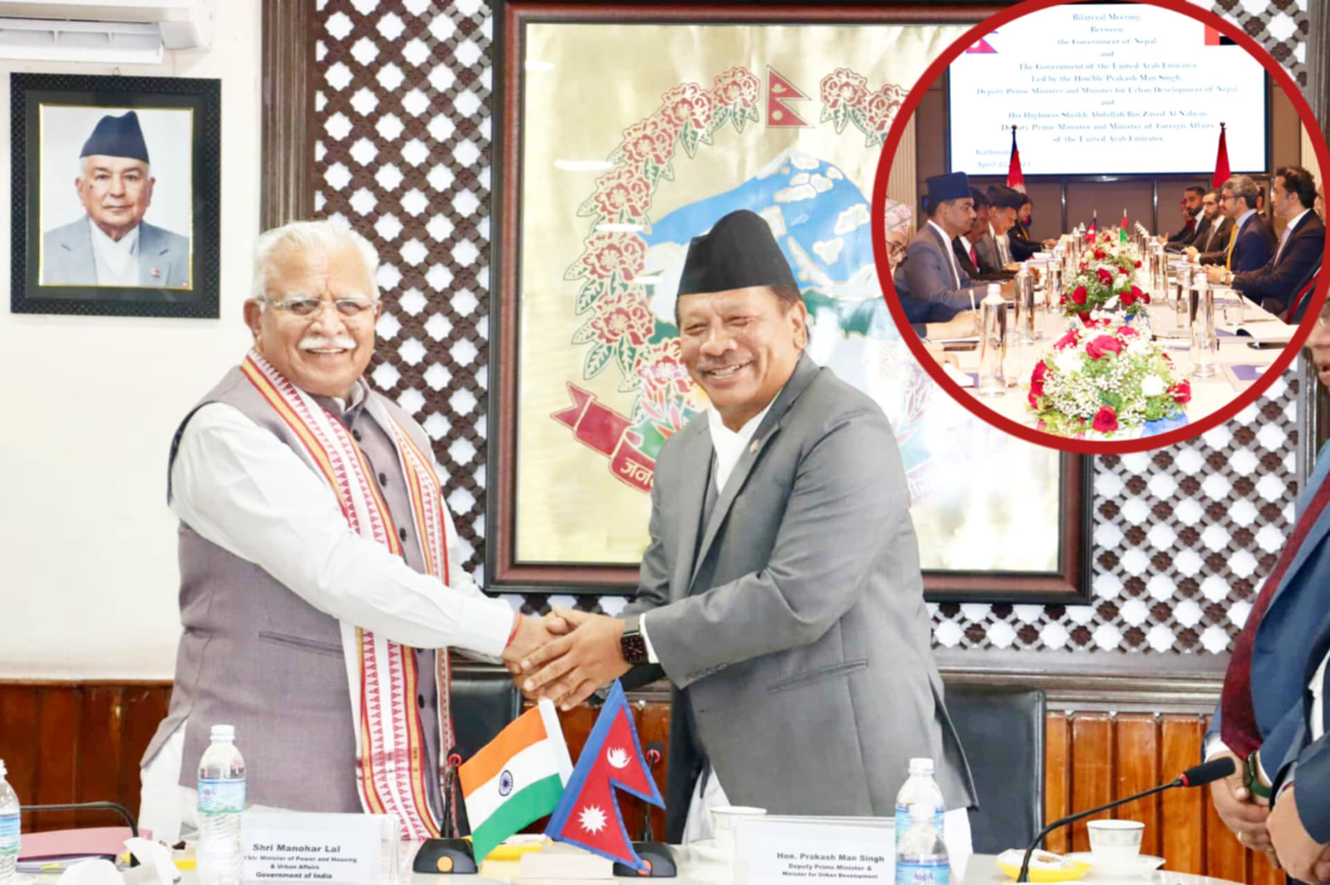यस अघि  उपप्रधानमन्त्री एवम् शहरी विकास मन्त्री प्रकाशमान सिंह र  संयुक्त अरब इमिरेट्सका उपप्रधानमन्त्री एवम् परराष्ट्रमन्त्री शेख अब्दुल्लाह बिन जायद अल नाहयानबिच आज शिष्टाचार भेटवार्ता भएकाे थियो ।