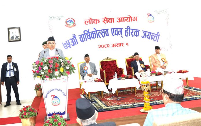 राष्ट्रपति पौडेलले मुलुक सञ्चालन गर्ने सरकारी निकायमा स्थायी सरकारका रुपमा रहने योग्यतम कर्मचारी छनौट गर्ने संवैधानिक जिम्मेवारी पाएको लोकसेवा आयोगले साढे सात दशकको अवधिमा आफ्नो मूल सिद्धान्त “योग्यता, निष्पक्षता र स्वच्छता” लाई प्रमुख आधार मान्दै निरन्तर क्रियाशील रहनु प्रशंसनीय पक्ष भएको उल्लेख गरे। उनले भने– ‘आफ्नो भूमिका निर्वाह गर्दै आयोगले सदैव वर्तमान पुस्ताप्रति न्याय तथा भविष्यका पुस्ता प्रतिको आशा एवम् भरोसाको केन्द्रका रुपमा आफ्नो कर्तव्य, दायित्व, जिम्मेवारी निर्वाह गर्न चनाखो हुन जरुरी छ ।’